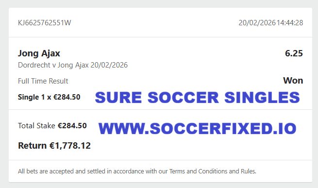 Make sure to reserve in time for the next 100% sure fixed matches.
