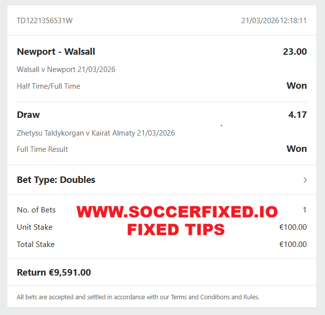 If your goal is to maximize profits with carefully selected bets, Double Fixed Matches is one of the strongest premium options available. This strategy is designed for serious bettors who are looking for high odds and powerful returns. Our experts focus on two highly profitable betting markets: Half-Time / Full-Time (HT/FT) or Correct Score with odd around 25.00 + one Fixed Match with odd around 3.00.